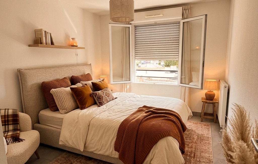 Une chambre paisible et une salle d’eau avec WC composent l'espace nuit de ce bien prêt à vivre.