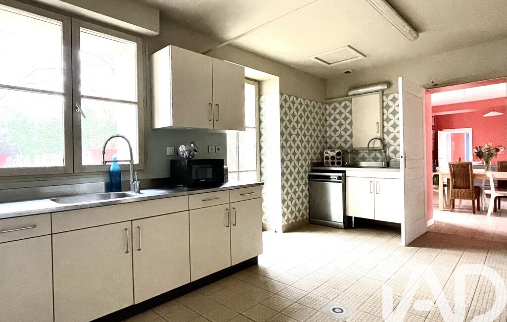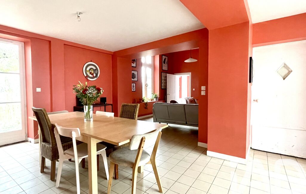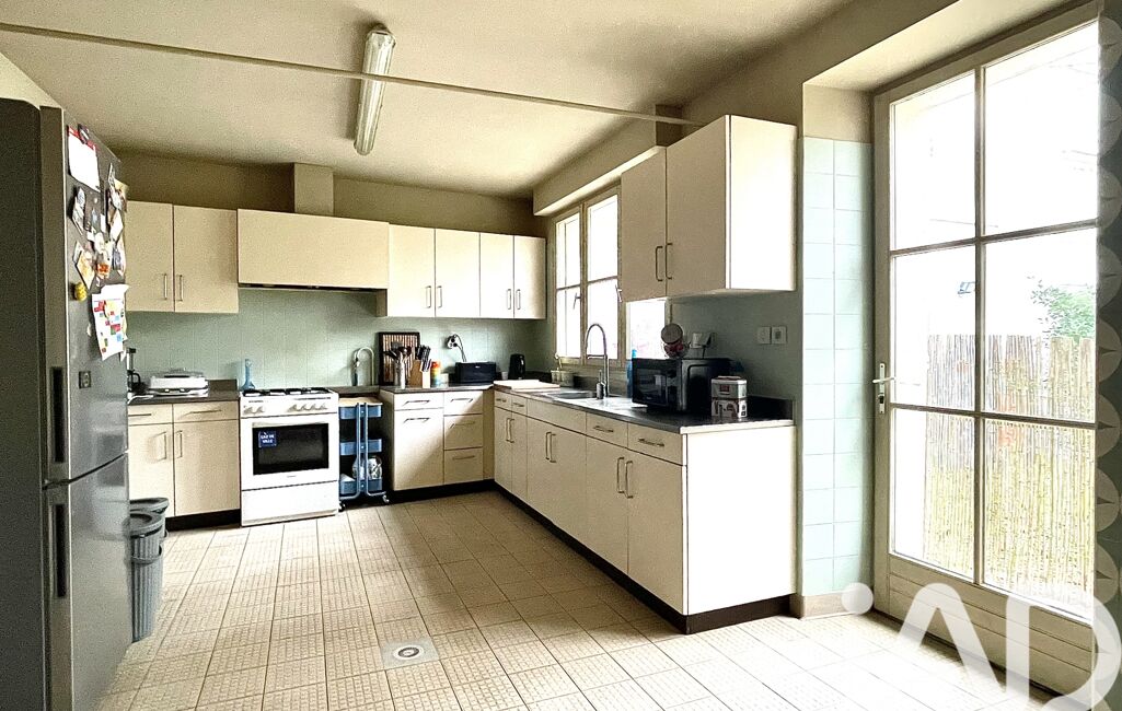 L’entrée ouvre directement sur un salon / salle à manger, prolongé par une cuisine attenante, anciennement à usage professionnel. Cet espace offre de beaux volumes et un fort potentiel de réaménagement, selon les envies et les projets. L’ensemble bénéficie d’un accès direct au jardin, un véritable atout pour profiter pleinement des beaux jours.