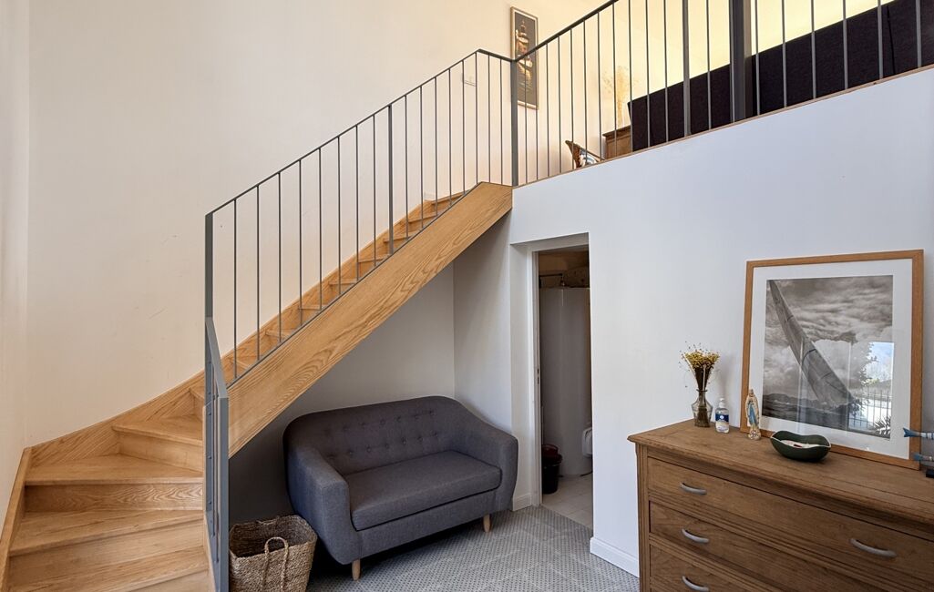 Dès l’entrée, les volumes et la lumière s’imposent. La pièce de vie s’organise autour d’un salon chaleureux, d’un espace repas convivial et d’une cuisine ouverte, moderne et parfaitement équipée. Un bureau permet de travailler au calme, complété par une mezzanine offrant un espace supplémentaire, idéal en coin lecture ou détente. Une buanderie vient parfaire l’ensemble.