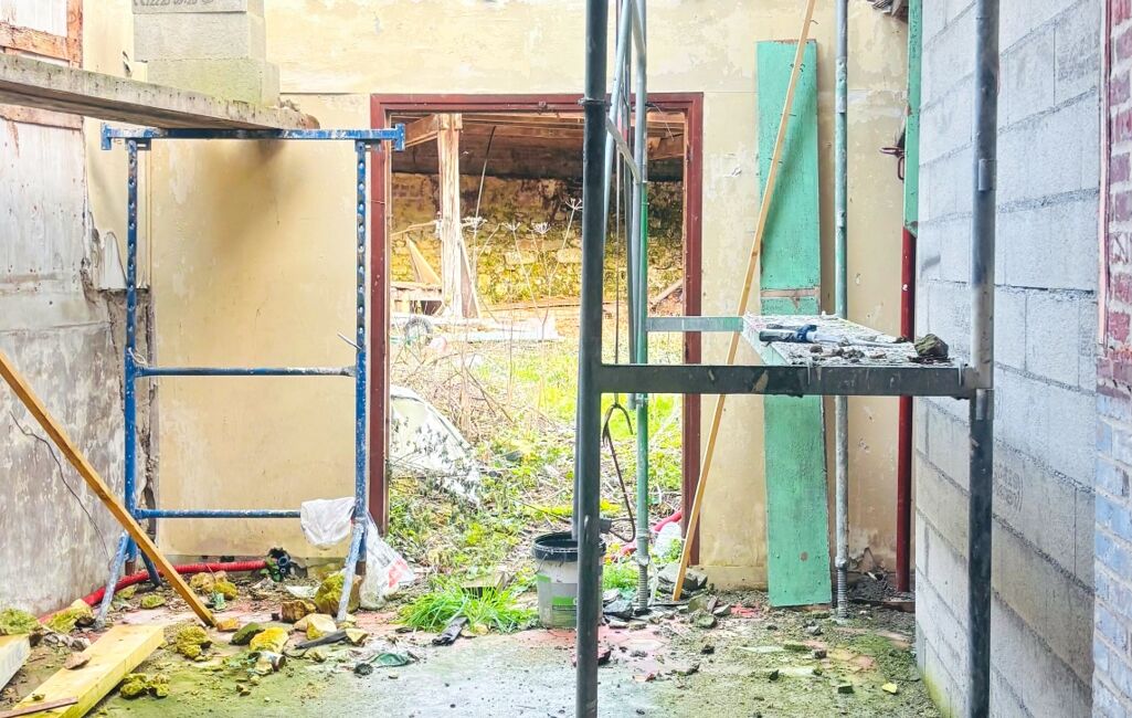 iad France - Sylvie Terriot vous propose: Ensemble immobilier sur une parcelle d'environ 790m2 comprenant deux bâtisses jumelées, chacune sur deux niveaux, totalement à rénover ( démolir et reconstruire car arrêté de péril) ainsi qu' une grande grange également à refaire entièrement sur le même terrain. Un jardin en surplomb de la grange accompagne cet ensemble à fort potentiel idéalement situé dans un village plein de charme et bénéficiant d'un cadre de vie authentique et propice à la tranquillité, avec les commodités essentielles ( gare, bus, école) et proche de Marines.
