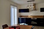 Dès l’entrée, on découvre un séjour avec cuisine ouverte. Un espace central, vivant, où l’on cuisine, on échange, on garde un OEil sur les enfants et on reçoit facilement. L’ensemble est moderne et lumineux.