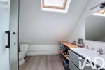À l’étage, le cachet se poursuit avec un parquet en bois massif et de beaux volumes. Vous découvrirez trois chambres, dont une spacieuse chambre de 32 m² avec espace dressing, ainsi que deux autres de 19 m² et 13,5 m². Une élégante salle de bains équipée d’une baignoire, d’une douche et de WC complète ce niveau.