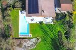 Pensé comme un véritable lieu de vie familial, le domaine s’organise autour de plusieurs espaces extérieurs : piscine chauffée avec douche extérieure, grande terrasse, terrasse belvédère dominant la propriété, terrain de pétanque, espaces de détente et accès à une rivière avec ponton.