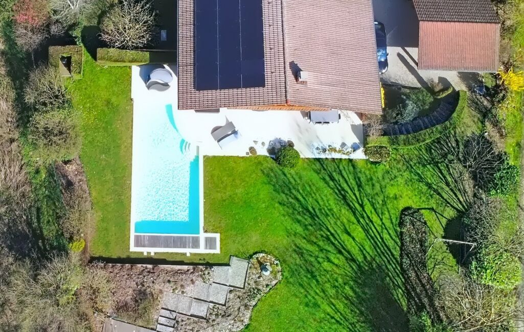 Implantée sur un terrain paysager de 2 700 m², cette propriété unique séduit immédiatement par son calme absolu, sa vue dégagée sur le Jura et la qualité exceptionnelle de ses aménagements.