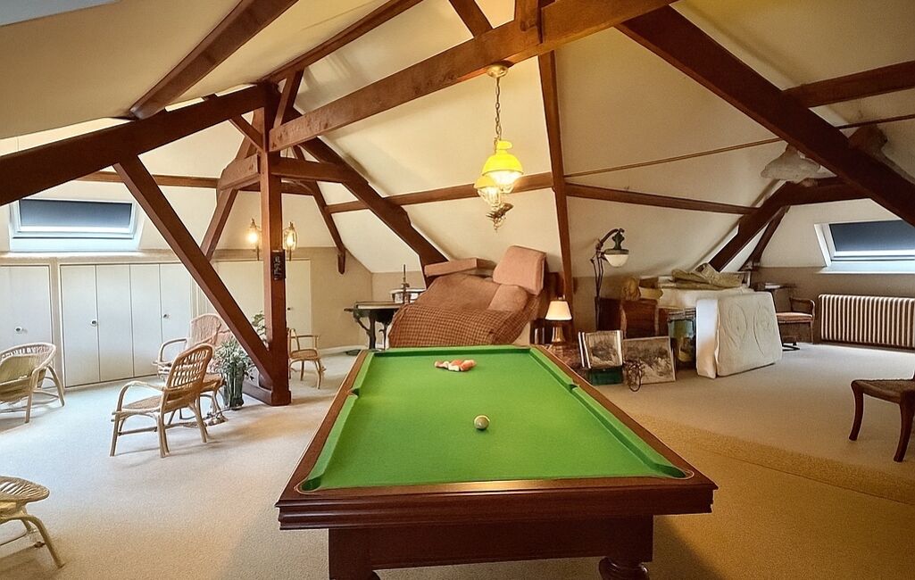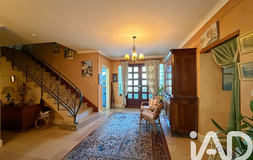- Au rez-de-chaussée, une vaste entrée de 12 m², 5 chambres, un bureau, une salle d'eau, un spacieux salon salle à manger avec cheminée, une cuisine séparée équipée, une buanderie.