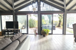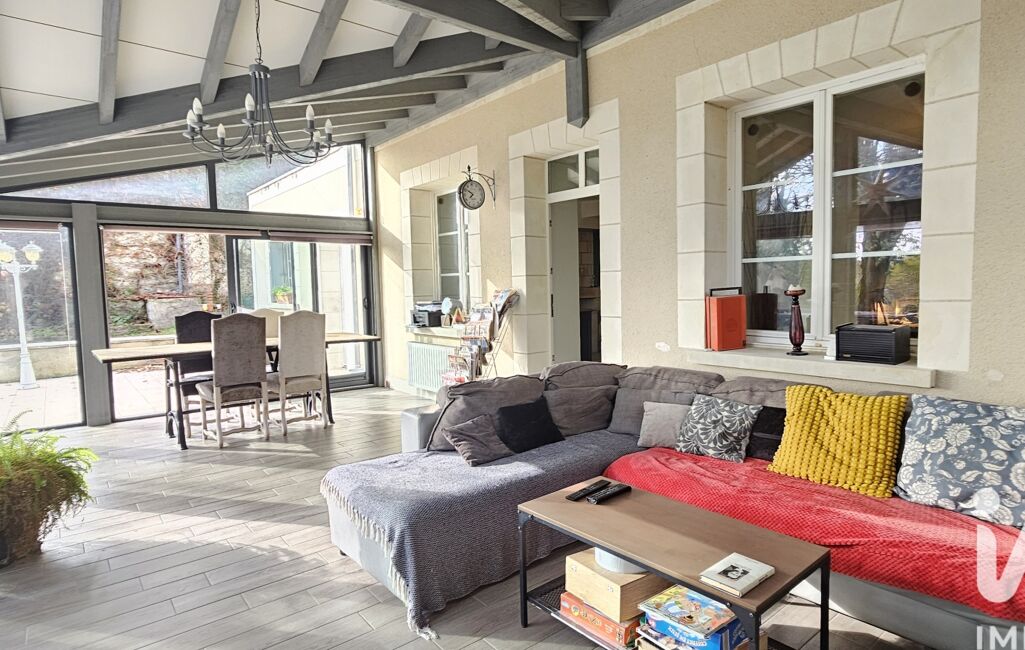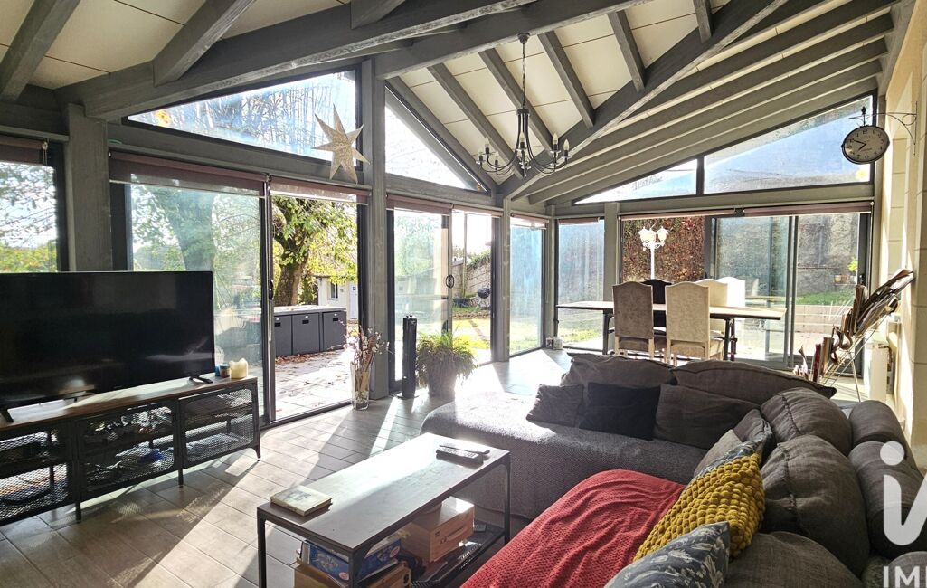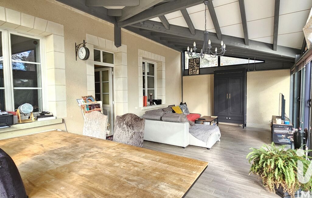 la cuisine aménagée dinatoire, le premier salon avec sa cheminée pour les soirées d’hiver, et la grande véranda baignée de lumière qui devient, à elle seule, une pièce de vie à l’année. On s’y installe pour lire, travailler, recevoir… ou juste regarder le paysage changer.