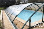 . Implantée sur un terrain d’environ 1 000 m² entièrement clos et paysager, la propriété possède une piscine 9 x 4 m avec dôme, une cuisine d’été et un espace potager avec abris de jardin.