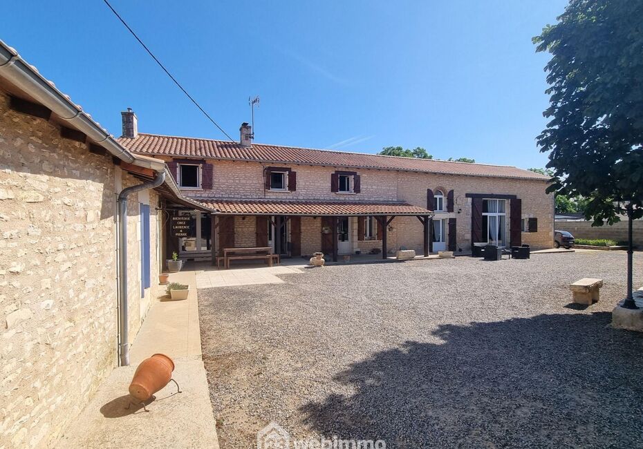 Votre agence 123webimmo l'immobilier au meilleur prix vous présente : Demeure en pierre avec vie de plain-pied, 388 m² habitables, 10 pièces, 7 chambres, garage, hangar. Terrain de 1831 m² clos, au calme. 86190 Villiers. À 15 mn de Poitiers, de l'autoroute et 20 mn du Futuroscope. Longère des années 1900, rénovée. Elle est composée en...