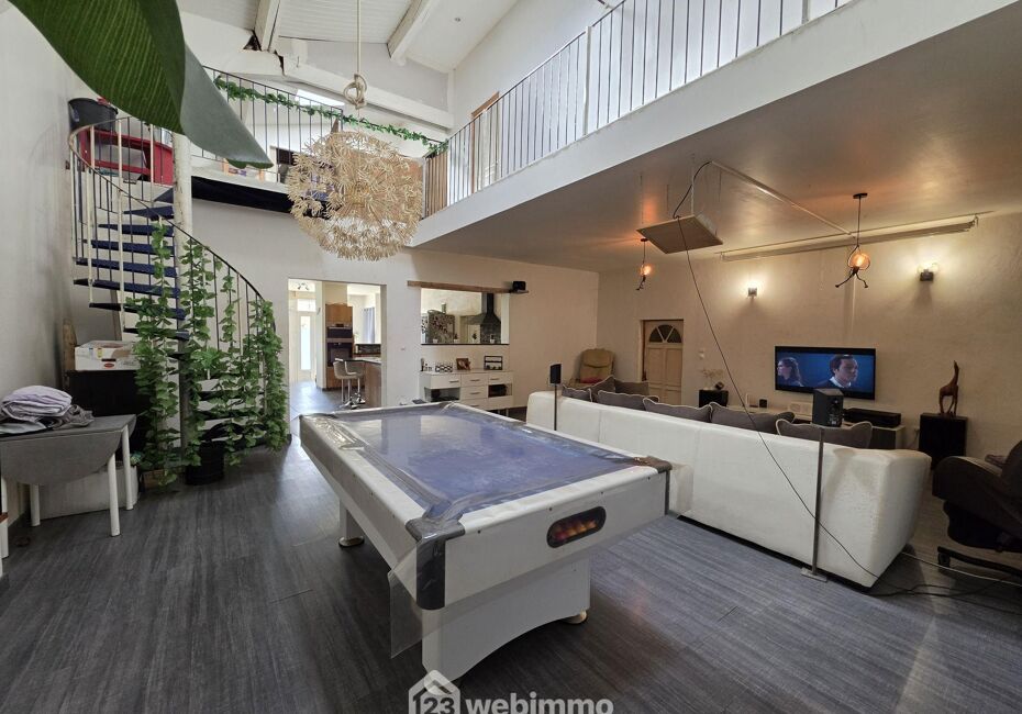 Votre agence 123webimmo vous présente : LOFT à l'entrèe du Médoc : 234 m² habitables, volumes exceptionnels et local pro indépendant de 35 m². RARE ! Située en plein cœur de Castelnau-de-Médoc, cette élégante bâtisse en pierre allie charme de l'ancien et volumes hors normes. Dès l'entrée, vous serez séduits par un espace de vie...