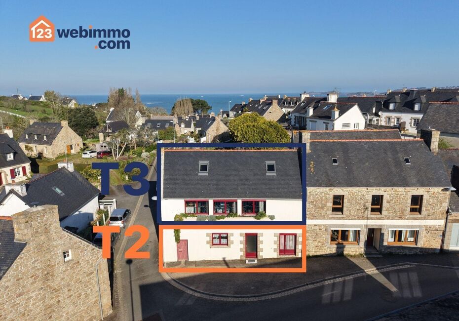 Votre agence 123webimmo vous présente : À 400m de la magnifique plage de Notigou comme de l'épicerie boulangerie et à 10km de Lannion et sa gare TGV, au cœur du village historique de Locquémeau, orientée Sud, maison de bourg de 112 m² renfermant au rez-de-chaussée un appartement de type 2 de 42 m² et à l'étage, un second appartement...