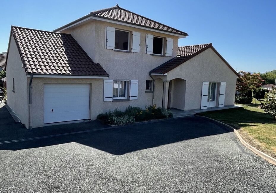 Maison de plain-pied de 135 m², construction récente de 2021. Elle est équipée d'un beau séjour lumineux de 63 m², de 4 chambres dont une suite parentale, une salle de bain et une salle d'eau, un espace buanderie. Elle possède également un garage de 23 m² et une terrasse ouvrant sur un terrain de 950 m². Chauffage au sol par une PAC...