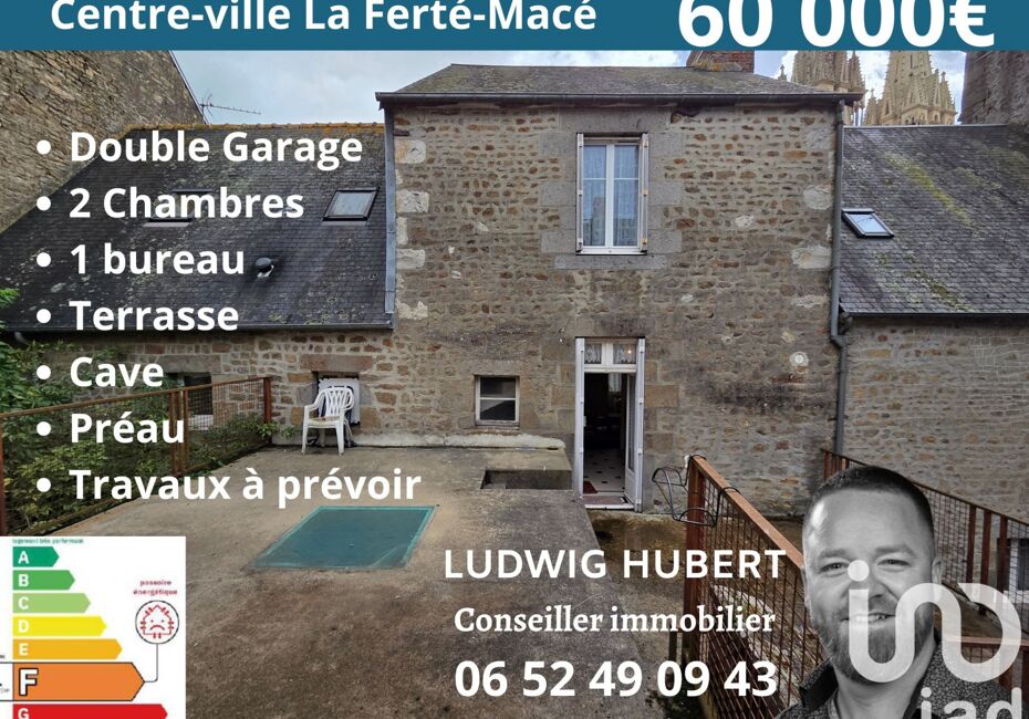 Iad France - Ludwig Hubert vous propose : Située en plein cOEur de La Ferté-Macé, cette maison offre un fort potentiel et dispose de deux garages, un vrai atout pour un bien en centre-ville. Sur quatre niveaux, elle se compose : - d’une entrée - d’un séjour lumineux - d’une cuisine ouvrant sur la grande Terrasse - de deux chambres et...