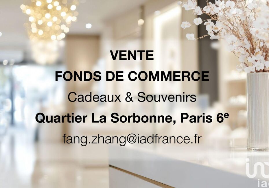 Iad France - Fang Zhang (06 62 29 39 21) vous propose : Vente Fonds de Commerce – Cadeaux & Souvenirs – Quartier La Sorbonne, Paris 6 Emplacement exceptionnel au cOEur de Paris, dans un secteur très commerçant et touristique, à seulement 5 minutes du métro Odéon ou Cluny – La Sorbonne. Belle boutique lumineuse d’une surface totale...