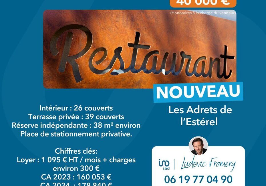Iad France - Ludovic Framery (06 19 77 04 90) vous propose : À VENDRE EN EXCLUSIVITE – Fonds de commerce restaurant / pizzeria / salon de thé / glacier – Licence IV – Les Adrets de l’Estérel (83) Emplacement stratégique – Faible concurrence – Clientèle locale & touristique. Vous recherchez une affaire saine, polyvalente et bien...