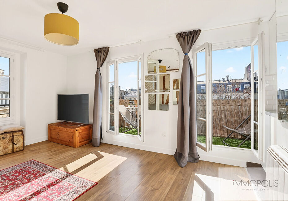 Exclusivité Immopolis : un havre de lumière au pied de Montmartre ! Ce studio de 19,78 m² (23 m² en surface pondérée) est situé au 5e et avant-dernier étage par escalier, exposé sud, avec une vue dégagée et une terrasse de 6,8 m² ! Il bénéficie d'une lumière généreuse grâce à ses deux portes-fenêtres exposées Sud donnant...