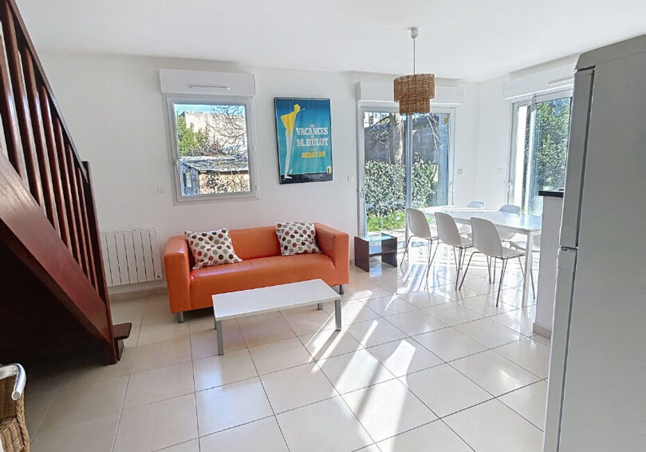 Agréable maison meublée, située à deux pas de la plage et des commerces, avec jardin. Elle se compose, au rez-de-chaussée, d'une entrée, d'une chambre avec salle d'eau, d'un WC, ainsi que d'une belle pièce de vie avec cuisine ouverte aménagée et entièrement équipée (lave-vaisselle). À l'étage, vous trouverez deux belles chambres...