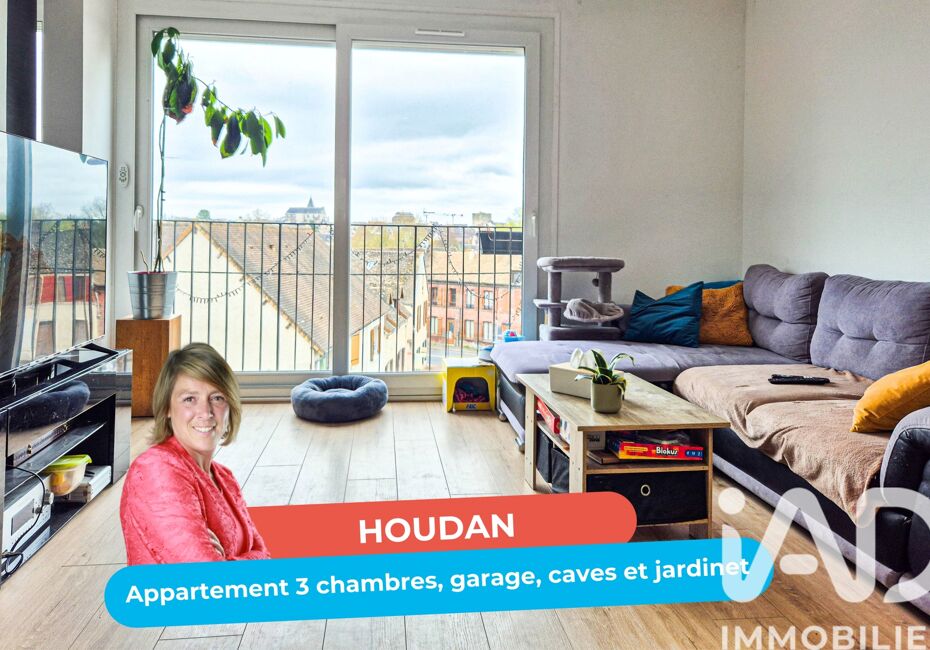 Iad France - Mélanie Baudin vous propose : À Houdan et rien qu'à HOUDAN ! Situé au 2ème étage d'une petite copropriété bénévole de 4 logements, bel appartement rénové et très lumineux, exposé SUD EST. Il est composé de 4 pièces, 3 chambres. 1 garage de 18 m² avec 2 stationnements possibles juste devant et 2 caves de 4 m²...