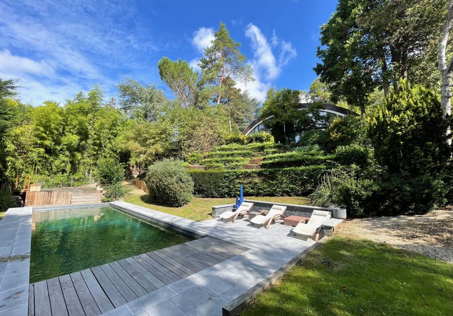 Ici, le chic se murmure et le calme s'installe. Construite dans les années 70 avec des lignes qui rappellent l'architecture de Le Corbusier, cette maison moderne est en harmonie avec la nature. Dès l'entrée, vous serez séduits par ses volumes baignés de lumière. Dans le séjour, une large baie vitrée ouvre sur l'extérieur et créé une...