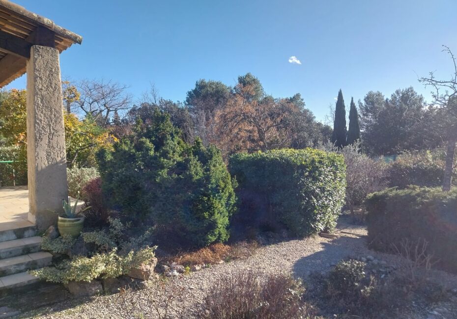 NOUVEAUTÉ. Dans un environnement de qualité et résidentiel, maison de plain-pied de 131 m² hab environ, sur 2 200 m² de terrain clos, belle pièce de vie (43 m²) donnant sur sa terrasse au sud, trois chambres, deux salle d'eau, avec studio indépendant. Grand garage de 53 m² avec sa grande mezzanine. Piscine 8x4 avec son pool-house. Deux...