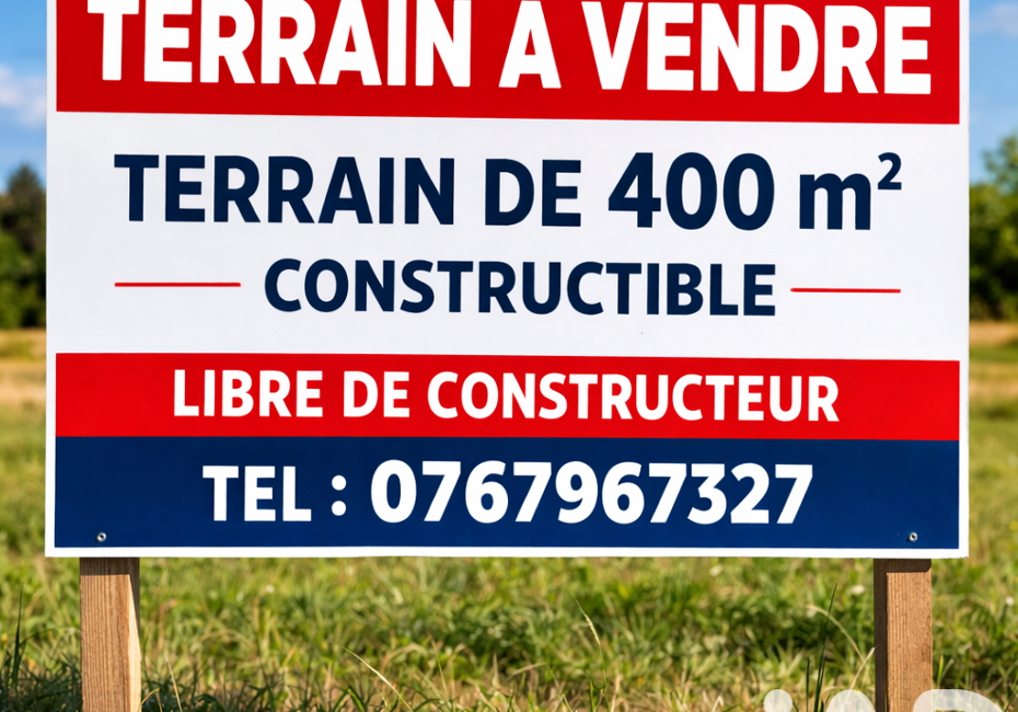 Iad France - Sophie Mignon vous propose : Terrain constructible de 400 m² à vendre. Situé en première ligne, ce terrain est idéal pour concrétiser votre projet de maison. Il est libre de constructeur et bénéficie d’une emprise au sol de 90 m², vous permettant de construire selon vos envies. Les raccordements au tout-à-l’égout, à...