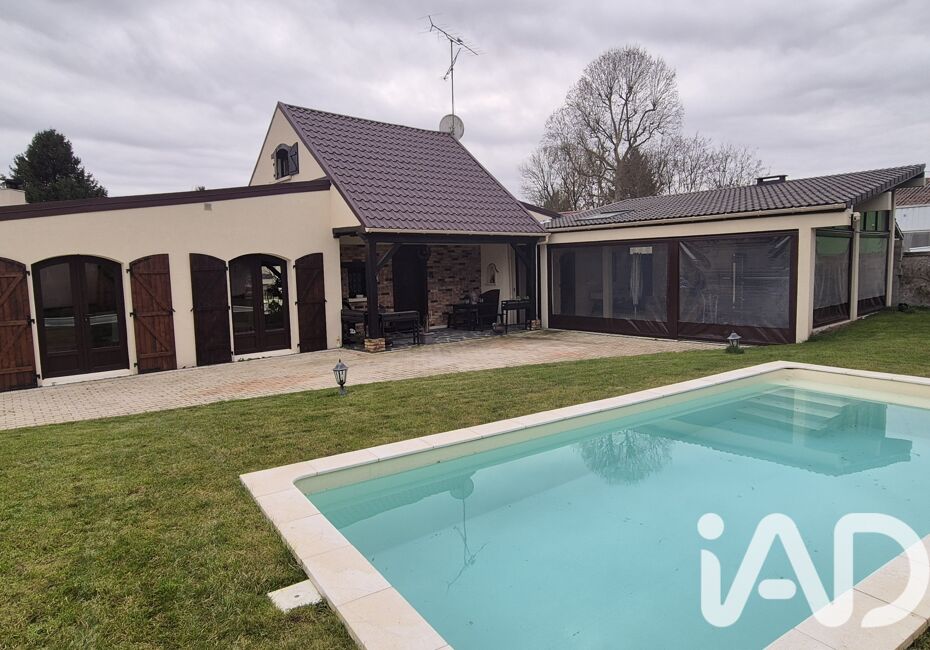 Iad France - Ugo Dulphy vous propose : EN PLEIN COEUR DE CENTRE VILLE DE LA FERTE SOUS JOUARRE ET OUI CELA EXISTE ! Super villa avec piscine ! Comprenant une grande entrée, sur une immense pièce de vie salle à manger / salon avec cheminée le tour plus de 60 m², wc, cuisine amenagée avec cellier buanderie donnant sur une terrasse couverte...