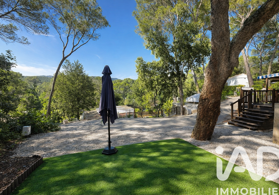 Iad France - Eric Lamac vous propose : DOMAINE DU PIN DE LA LEGUE - FREJUS - CHALET sur TERRAIN - 234 m² / parts sociales de terrain et place de parking dans le hameau BAU DOU SER. Comprend les installations suivantes : - 1 mobilhome climatisé de 28 m² et composé de : 1 salon avec canapé, 3 chambres doubles, 1 salle d'eau, 1 WC, - 1 auvent...