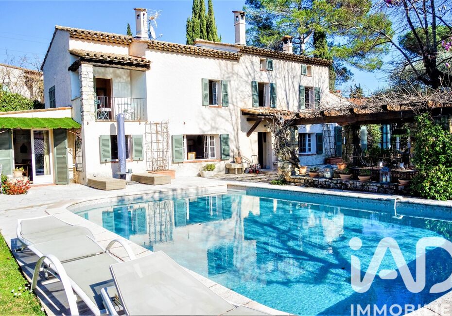 Iad France - Thierry Barrau vous propose : Au sein d’un quartier résidentiel de Mougins, et à proximité de Cannes, Mas Provençal de 179 m² exposée Sud, implantée sur un terrain arboré et plat de 1862 m² agrémenté d’une piscine de 9 X 5.5M. La Propriété très typique possède beaucoup de charme tant sur les extérieurs qu’à...