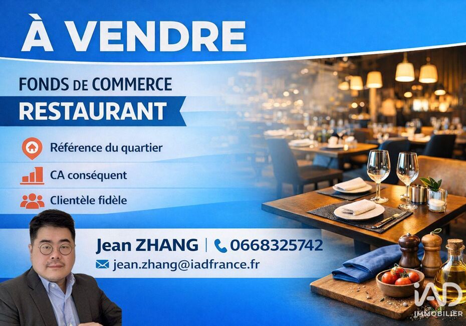 Iad France - Jean Zhang (06 68 32 57 42) vous propose : Fonds de commerce restaurant - Licence IV – CA conséquent – Extraction - Clientèle fidèle À céder fonds de commerce restaurant avec Licence IV, implanté sur un axe passant bénéficiant d’un flux régulier, porté par une clientèle mixte de bureaux et résidentielle, avec une...