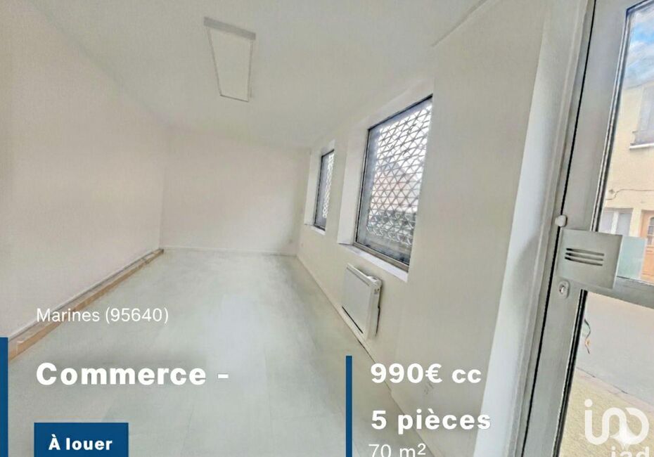 Iad France - Anne-Solène Hervé (06 02 16 52 23) vous propose : Local commercial de 70 m² environ à louer Situé en plein cOEur du centre-ville de Marines, dans une artère commerçante dynamique, ce local commercial de 70 m² environ réparti sur trois niveaux offre un excellent potentiel, une belle visibilité et un emplacement central. Le...