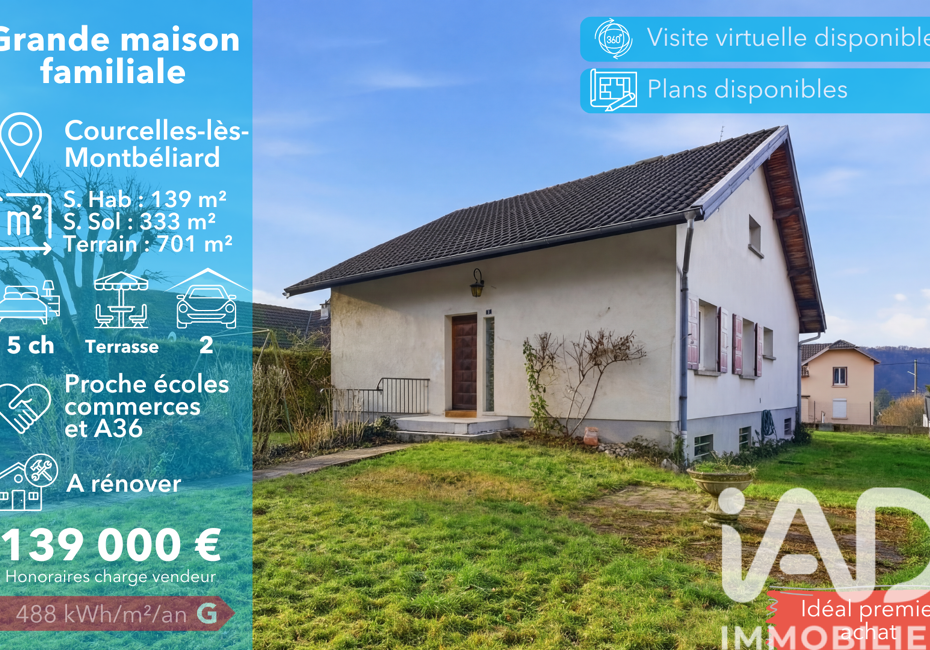 Iad France - Julien Meley vous propose : Vous recherchez une maison à rénover dans un village recherché, offrant de beaux volumes, un fort potentiel et un cadre de vie paisible ? Cette opportunité rare pourrait bien être votre prochain projet de vie. Située à Courcelles-lès-Montbéliard, dans une rue calme en sens unique, cette maison...