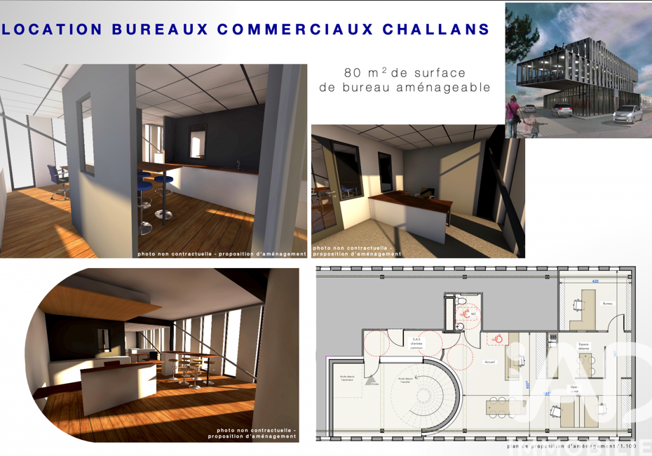 Iad France - Lucie Boue vous propose : Locaux et bureaux commerciaux à Challans 80 m² de bureaux aménageables avec un espace d'accueil, un WC, un open space très lumineux, un bureau indépendant et un espace kichenette. Idéalement situé, Zone du Leclerc - Le Domino Au 2ème étage avec ascenseur 2 mois de dépôt de garantie Bail...