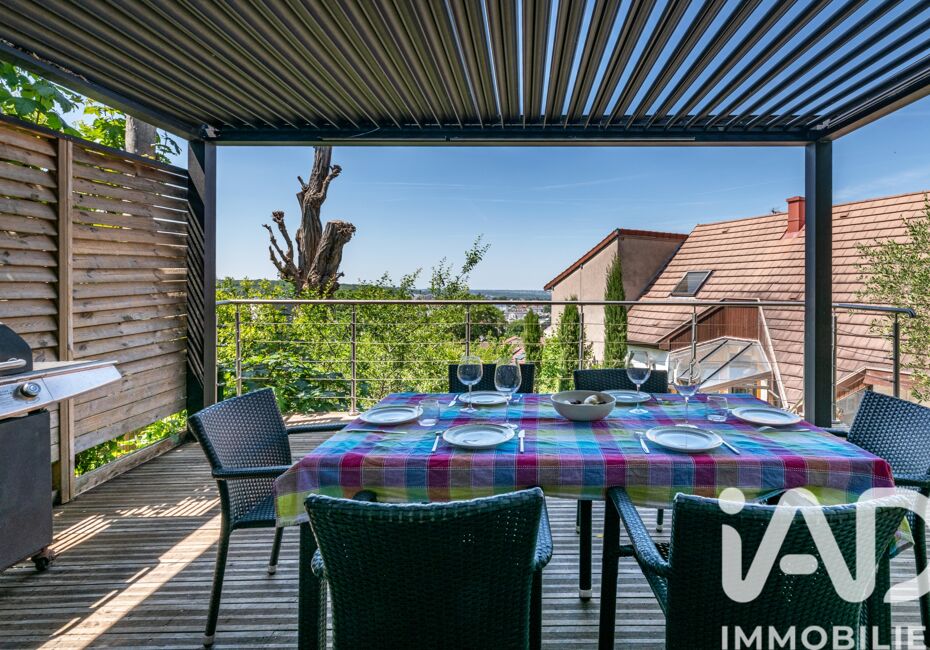 Iad France - Beatrice Allouche vous propose : Clamart, maison lumineuse d'architecte avec son ossature en bois, de 9 pièces, édifiée sur un terrain de 550 m² environ au calme dans le quartier résidentiel et recherché de Galvents Corby. Jardin en escaliers avec terrasses, arboré, orienté Sud-Est. La maison de 221 m² environ est sur 3...