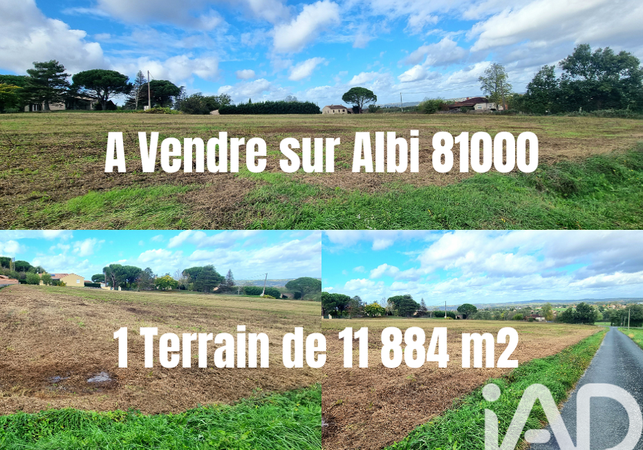 Iad France - Stephane Remy vous propose : À Vendre – Terrain 11 884 m² situé à Albi (81000) à 5 minutes du Stadium Municipal d'Albi dans un secteur recherché et calme, ce terrain de 11 884 m² offre un beau potentiel pour vos projets immobiliers ou d’aménagement. Superficie : 11 884 m² Environnement : Proximité des commodités, des...