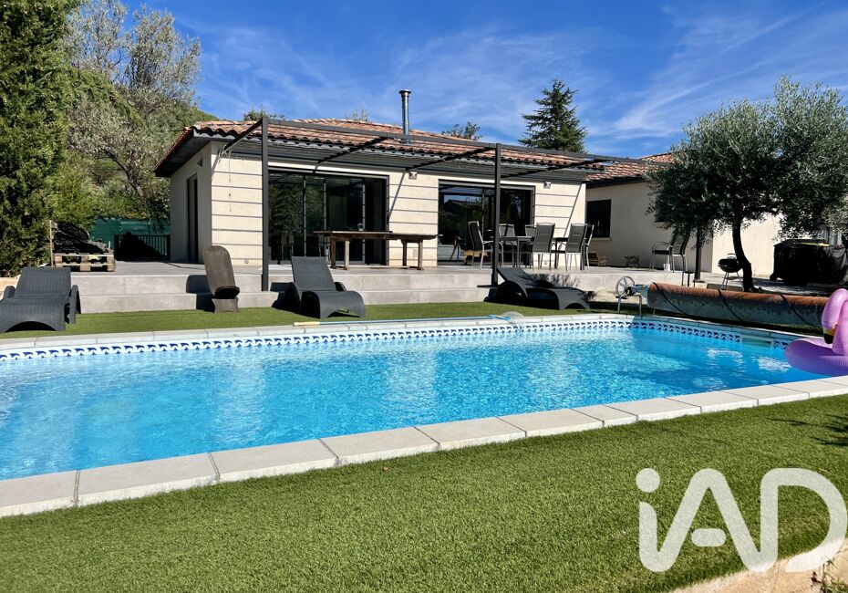 Iad France - Nathalie BOYER vous propose : SAINT-ZACHARIE. Nouveauté coup de cOEur ! Dans un environnement recherché, très belle maison de 2015, lumineuse, de Plain Pieds, en Type 5, d'une surface d'environ 156 m² avec piscine chauffée, grand carport et chalet bois sur environ 2000 m² plat, clos et arboré d'oliviers avec l'eau du CANAL...