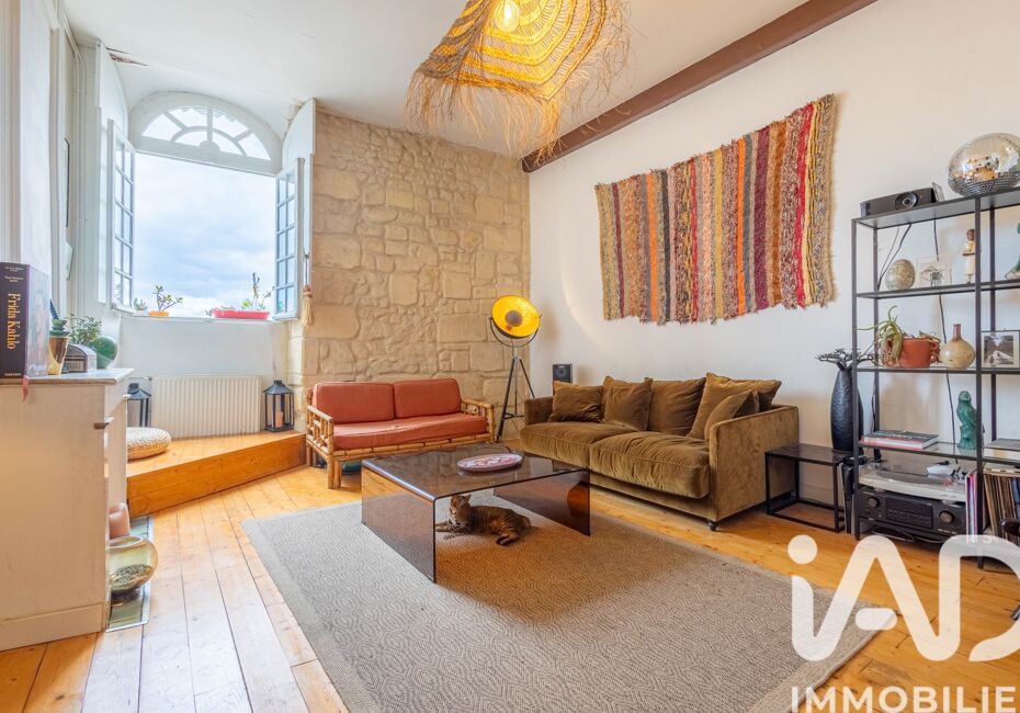 Iad France - Anthony Heymann vous propose : Bordeaux - Quartier Saint-Pierre - vue Garonne Idéalement situé en plein centre historique de Bordeaux, sur les quais, proche de la place du Palais, Tram B, C et D à proximité immédiate. Appartement T3 de 75 m² carrez (90 m² au sol) en duplex au dernier étage d'un bel immeuble en pierre. Au...