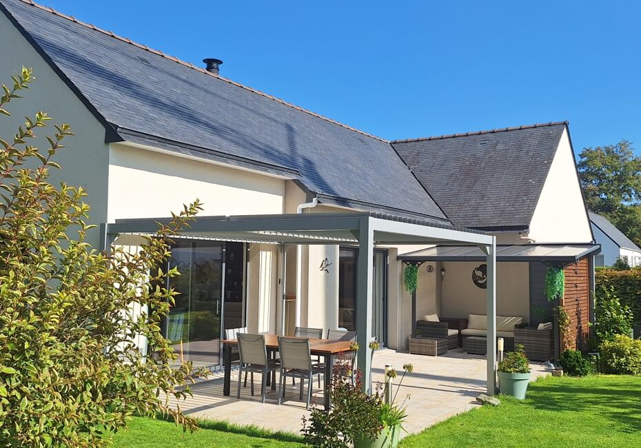 Iad France - Fabien Ricour vous propose : Sublime Maison Moderne de Plain-Pied de 117 m², avec Jardin et Garage à Locoal-Mendon, coup de cOEur assuré ! Cette magnifique maison contemporaine de plain-pied construite en 2016 vous séduira par ses lignes épurées et sa façade élégante qui offrent un cachet moderne et raffiné, s'intégrant...