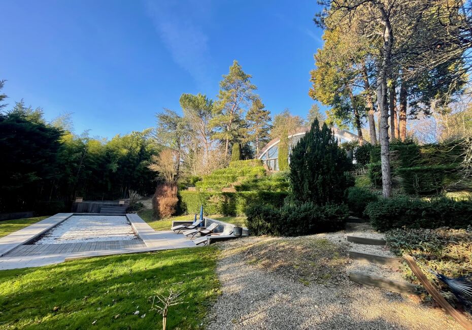 Le charme discret d'une maison de caractère. Cette maison à l'esthétique moderne propose une immersion dans la nature. Son dessin singulier s'inspire des principes développés par l'architecte moderniste Le Corbusier dans les années 1960. Conçue autour d'un bâtiment central à la forme arrondie et deux ailes latérales aux toits...