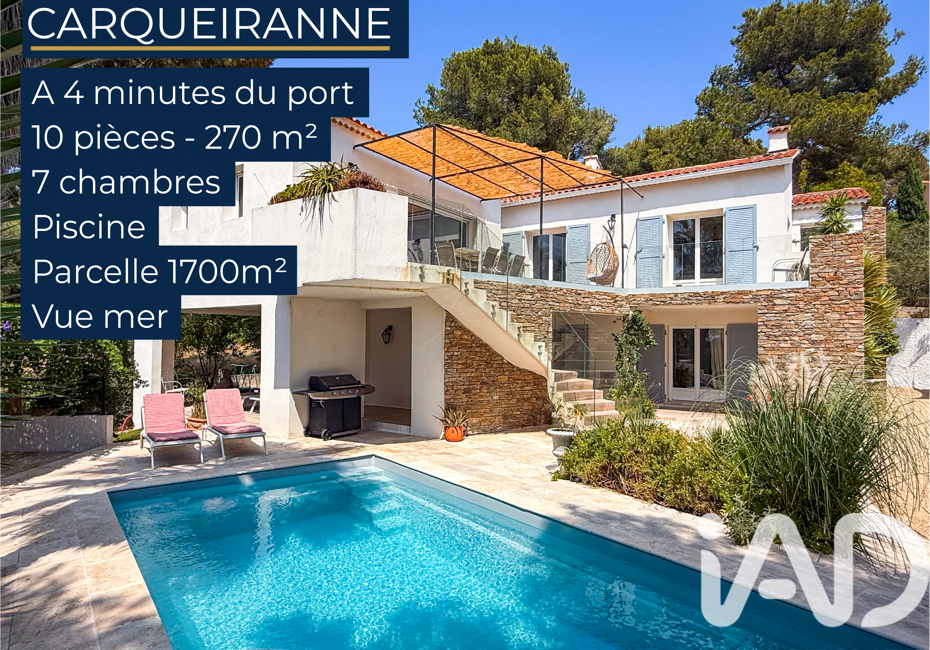 Iad France - Alexandre Padel vous propose : MAISON FAMILIALE 7 CHAMBRES - A proximité des commodités - Sans vis à vis Une demeure d'exception de 270 m² à moins de 5 minutes du port et du centre de Carqueiranne, offrant un cadre de vie raffiné sur un vaste terrain de 1738 m², entourée d'un jardin verdoyant et d'une piscine. Dès...
