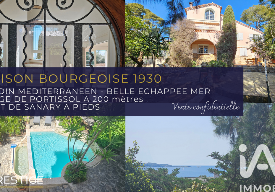Iad France - Julie Verriere vous propose : CHARME FOU - PLAGE ET PORT A PIEDS - Dans le quartier très prisé de Portissol, nichée au cOEur de son jardin intimiste et luxuriant où les essences méditerranéennes rivalisent de beauté avec le chant des oiseaux, la maison bourgeoise pleine de charme attend une famille éprise de nature, de mer...
