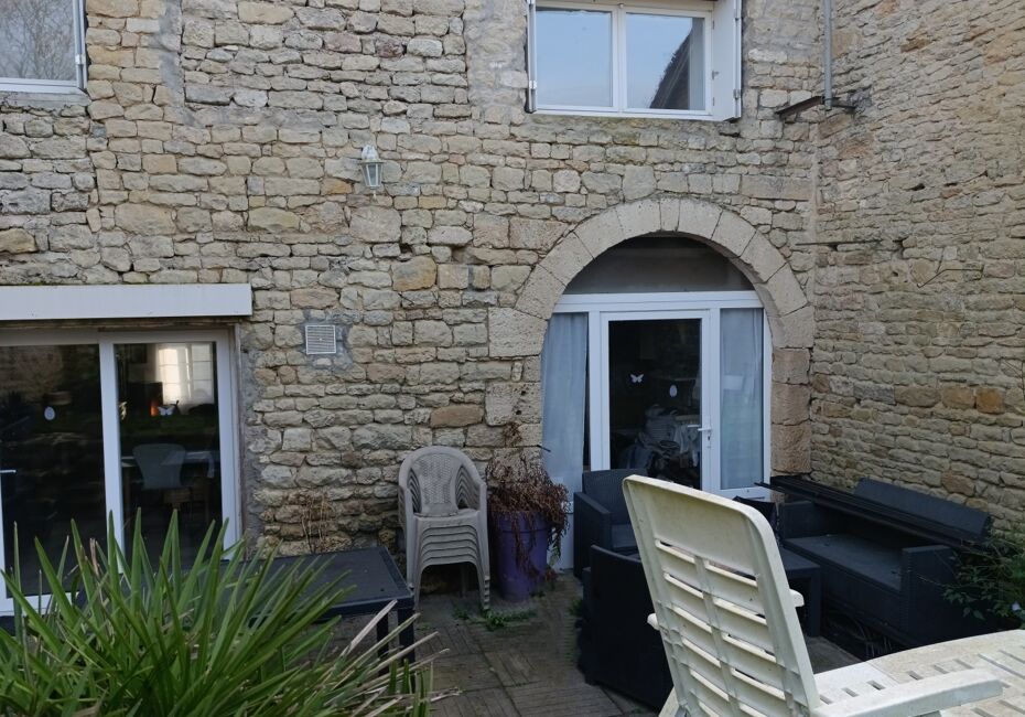 Iad France - Coralie Queyroy vous propose : En plein cOEur de Muron, charmante charentaise rénovée de 160 m² comprenant en rez-de-chaussée une pièce de vie, une cuisine, une salle de bain / WC, une pièce donnant sur le jardin (pouvant avoir plusieurs utilités telle que chambre, atelier création ou autre) et un atelier avec entrée...