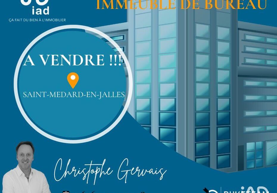 Iad France - Christophe Gervais (06 61 54 42 28) vous propose : Saint-Médard-En-Jalles, Zone des sables Immeuble de bureau de 700 m² environ sur 2 niveaux - 18 lots 380 m² environ au RDC + 320 m² environ à l’étage Terrain attenant de 200 m² environ Information d'affichage énergétique sur le bien associé à cette annonce : DPE NS...