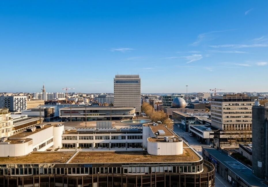 Iad France - Franck Cabot vous propose : Appartement T4 - 92 m² - Centre-ville Rennes - Vue panoramique - Parking - Cave - Métro Au cOEur du centre-ville de Rennes, dans la copropriété emblématique L’Éperon, découvrez ce spacieux T4 de 91,5 m² Carrez situé au 11ᵉ étage, offrant une luminosité exceptionnelle et une vue dégagée...